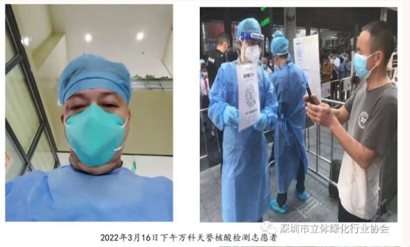 2022年3月15日,在接到龍崗區(qū)龍城街道的抗疫服務(wù)需求后,深圳市大業(yè)園林建設(shè)有限公司的總經(jīng)理陳慶榮先生,毫不猶豫的組織動(dòng)員公司員工參加抗疫志愿服務(wù)、支援第一輪全民核酸檢測(cè)。一整天的防疫工作任務(wù)中,維持秩序、掃碼登記、搬運(yùn)物資、……面對(duì)每一項(xiàng)工作,陳慶榮先生都認(rèn)真、耐心地完成。